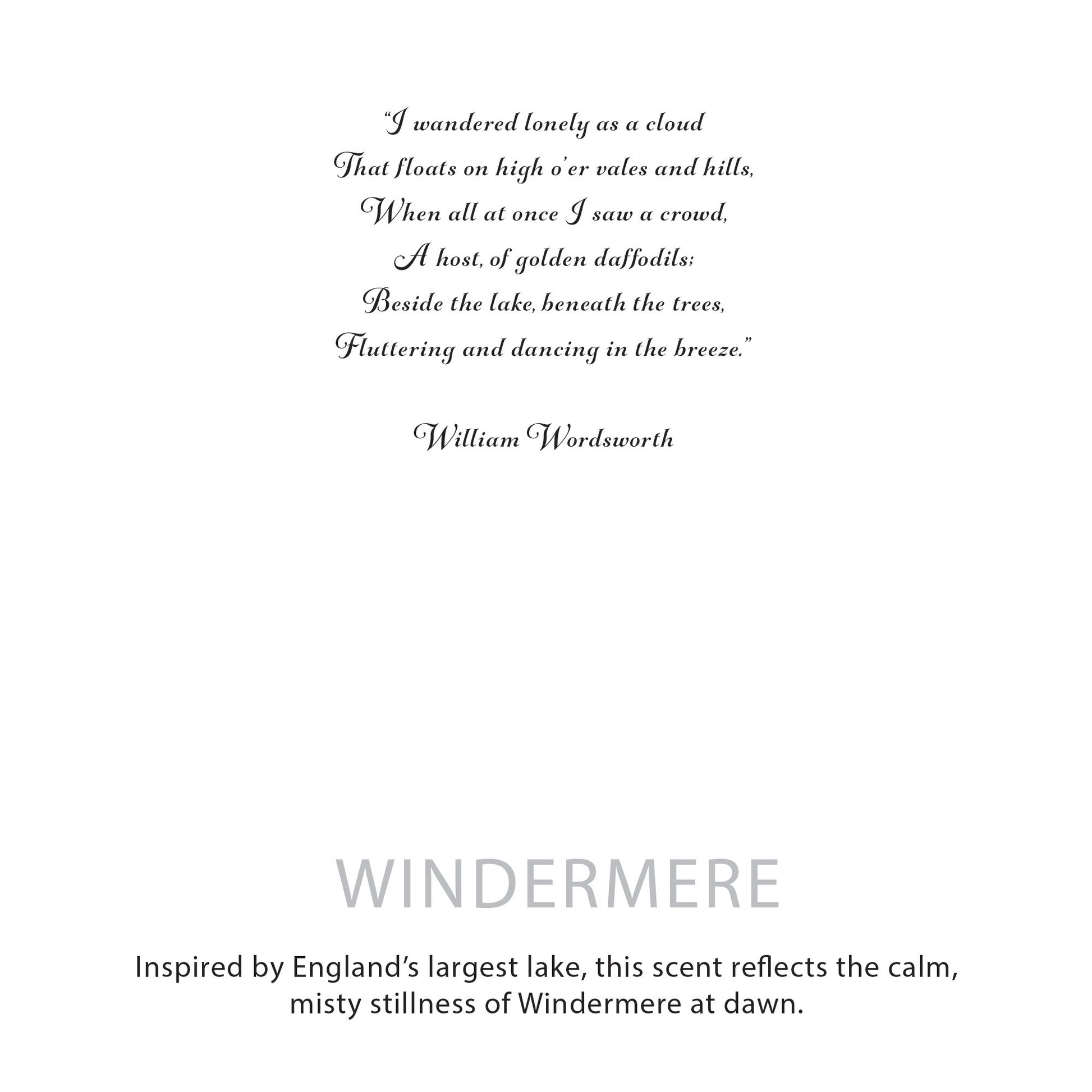 Inspired by England’s largest lake, Windermere captures the calm, misty stillness of early mornings by the water. Clean, soothing and quietly atmospheric, this fragrance brings a sense of space and gentle clarity into the home.